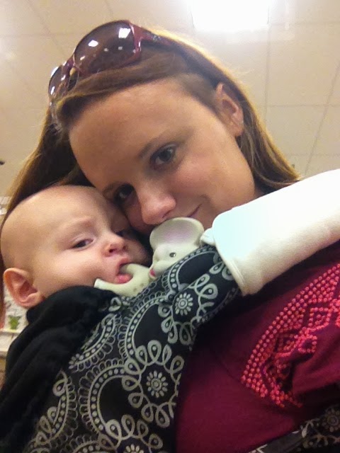 Riding in shopping carts is another new fun thing that we do. I have a shopping cart cover but it takes me thirty minutes to fool with that thing and I don't know that it makes much difference, so people just look at me like I'm a bad parent while you ride in the regular part of the cart. You don't seem to care!